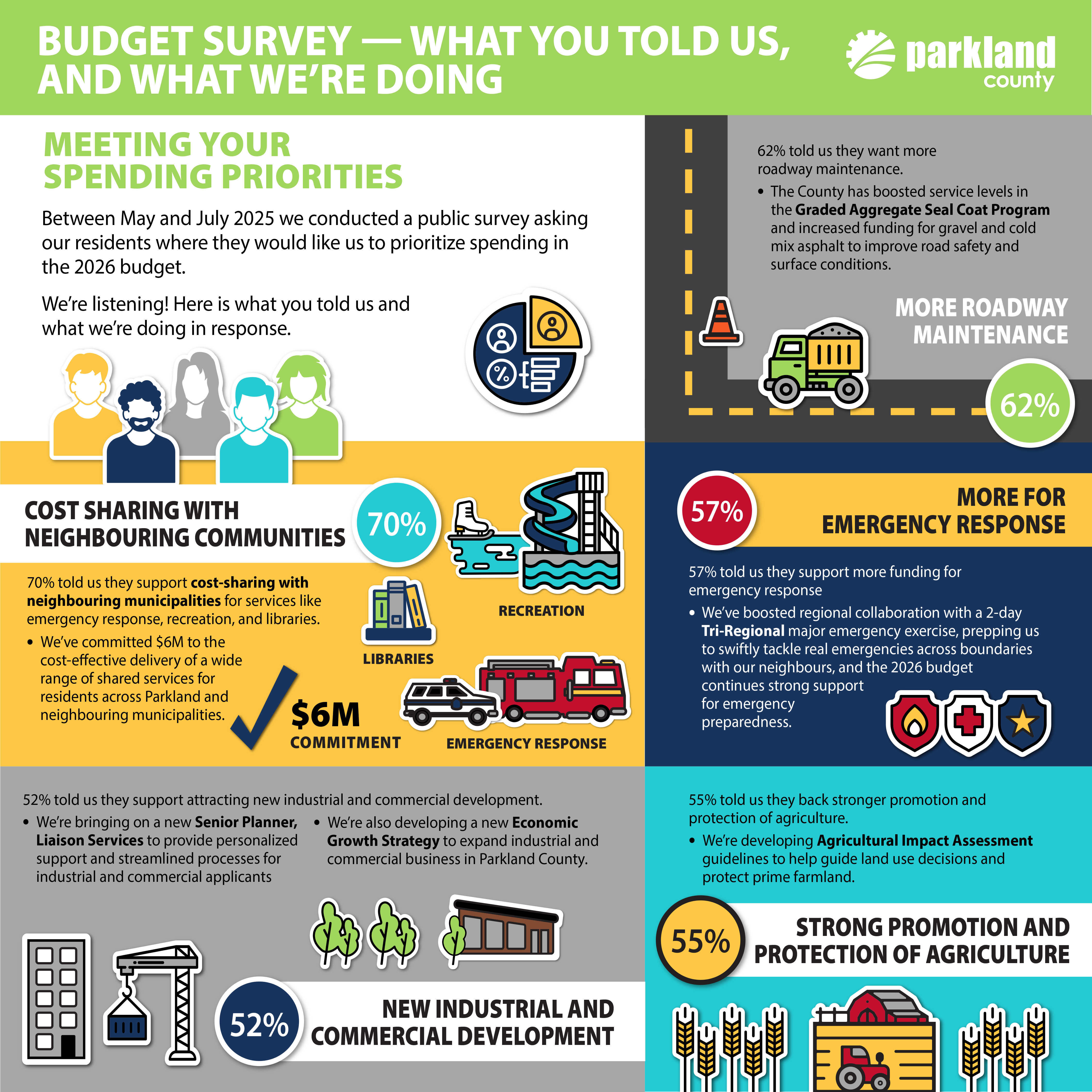 The County’s operating program revenue (e.g. the money that funds everyday County services) comes from a variety of sources. Non-residential property taxes provide for 40% of the $107.8 million budget, while residential property taxes provide for 33%. The remaining 27% comes from lots of different places. See the infographic below for a breakdown: