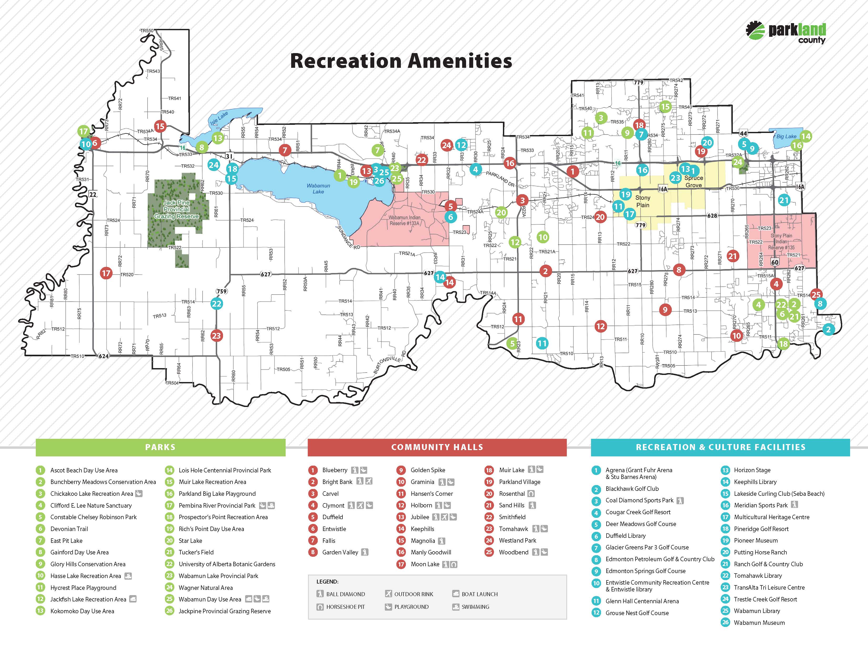 Our Recreation Amenities map features a variety of spots to explore - from parks, trails and community halls to recreation and culture facilities