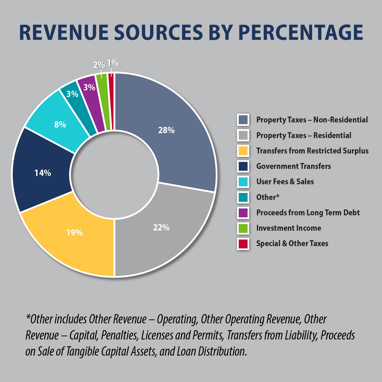 It’s true! Your property tax bill also includes taxes that the County is required to collect on behalf of the Provincial Government for education and policing services, as well as on behalf of seniors’ living facilities such as Merdian Housing Foundation and Evergreen Foundations.